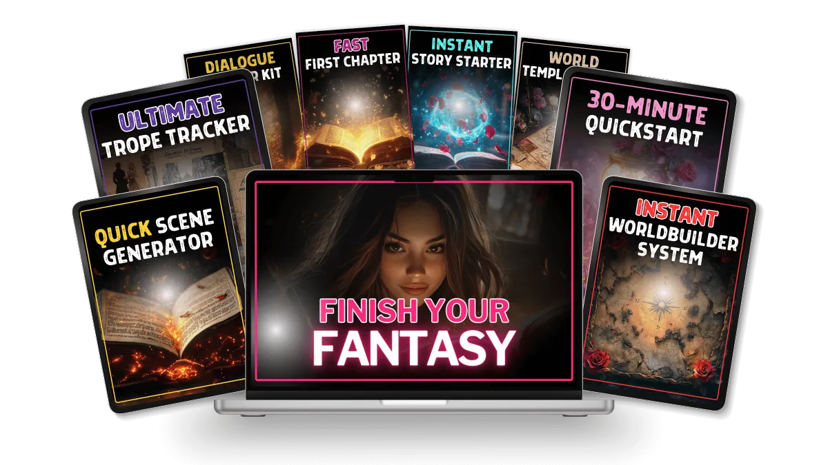 You’ll get instant access to the Finish Your Fantasy Power Pack, which includes the main writing toolkit (Scene Generator, Trope Tracker, Worldbuilder) plus 6 powerful bonuses to help with dialogue, worldbuilding, pacing, and more. Everything is delivered digitally so you can start using right away.